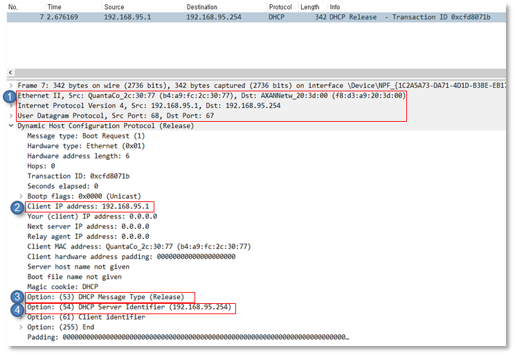 - DHCP Server Identifier (Option 54): IP 할당 해지 요청 할 Server IP 주소