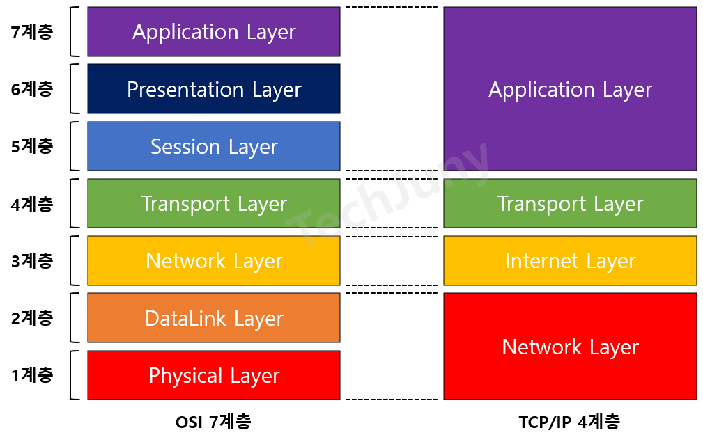 TCP/IP 4 계층은 OSI 7계층의 통신 과정을 요약하여 TCP/IP 기반의 프로토콜 통신에 초점을 맞추어 4개의 계층으로 나눈 모델이다.